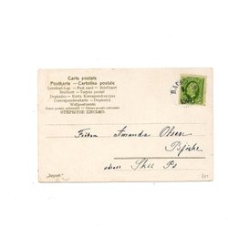 Järnvägsstämpel PKXP 17E 1909 på vykort från Konstindustriutställningen Sthlm