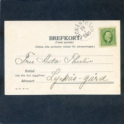 Stämpel LYCKÅS' GÅRD 1905 på romantiskt vykort