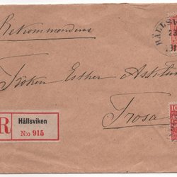REK.BREV N:O 915 HÅLLSVIKEN 1911--MED LACKSIGILL