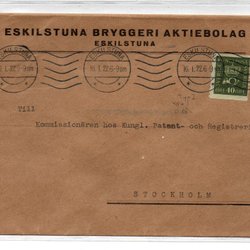 Brev från Eskilstuna till Stockholm 1922 med oblat från Eskilstuna Bryggeri