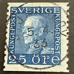 25 Öre Gustaf V profil vänster stämplat Stockholm 4, A-län