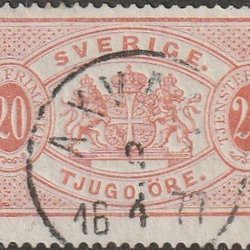 Tjänstefrimärke | Perf 13 | 20 öre röd| Prakt stpl Åmål 3/10-1889