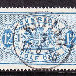 Tj17| Tjänstefrimärke | Perf 13 | 12 öre blå| Wäddö 6/2-1883