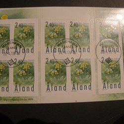 ÅLAND 1999 Gullvivor block LYX stämplad