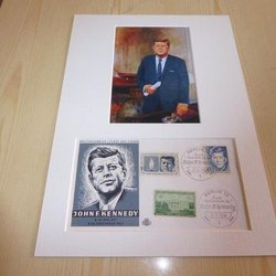 John F. Kennedy JFK fotografi och förstadagsbev med passepartout