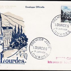 FRANKRIKE - 1954 - LOURDES 6 F - FDC