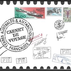Franska Antarktis 2020 Öar kartor fåglar växter mm 5v