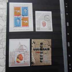 Polen 10 olika stämplade block på två sidor, Johannes Paulus II silvertryck.