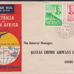 MAURITIUS - FÖRSTA REGELBUNDNA FLYGTUREN SOM FÖRBAND AUSTRALIA OCH SYDAFRIKA 1952