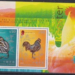 Hong Kong 2005 Apan och tuppen 2v i block.