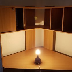 Hörn skrivbord med hyllor