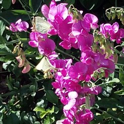 **KLOCKRANKA** ljuvlig klätterväxt med 6-8 cm stora klockor i vitt el lila.