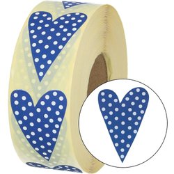 Etiketter blå prickigt hjärta 100st presentetiketter
