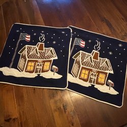 Handbroderad Broderad duk bordsduk med vinter fåglar hus i snö Jul