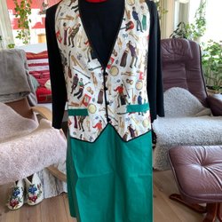 Vintage, Förkläde med 70-talsmotiv ”Frackformad” modell, fina detaljer Julklapp?