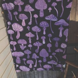 Filt/överkast med svampmönster mjuk svart lila.