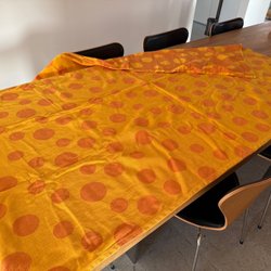 Duk bomull orange gul prickig barnkalas picknick 150 x 130 bordsduk
