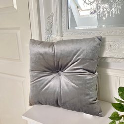 Dekorativ Kudde i Sammet 40x40cm Knapp Sammetskudde Komplett Grå