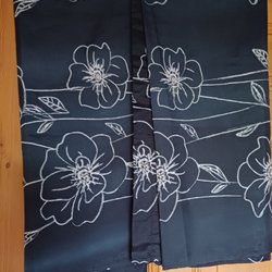 2 svarta gardinlängder med blommigt mönster i vitt