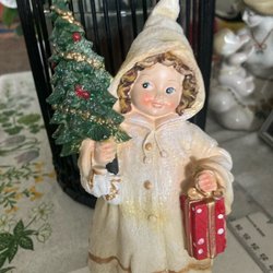 Juldekoration - Flicka med Julgran och Present