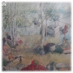 Carl Larsson tryck plansch kräftfångst med barnen vid matbordet