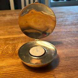 Ljusstake i mässing och träbotten