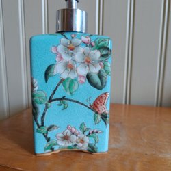 Handmålad tvålpump med blommor och fjärilar