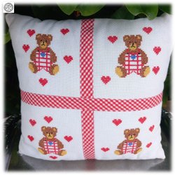 Vacker broderad stoppad barnkudde prydnadskudde med nallar gediget handarbete