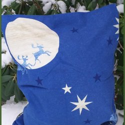 Örngott med renar i släde mot månljus stjärnor. VACKERT
