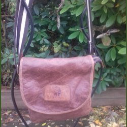 Toro axelremsväska i skinn med textilband på klaff Praktisk med patina
