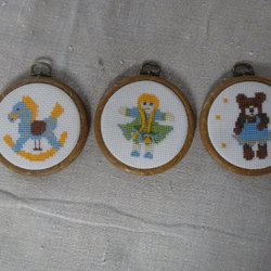 Broderade tavlor i träram Barnmotiv