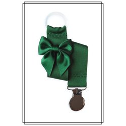 Grön napphållare med rosett och silverfärgat clip