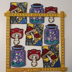Set med 9 broderade tygmärken - Svampar