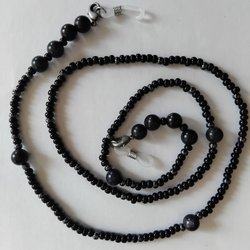 Unik glasögonband med svarta plastpärlor.