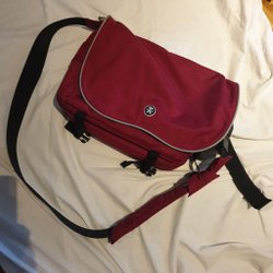 Crumpler vinröd axelremsväska laptopväska