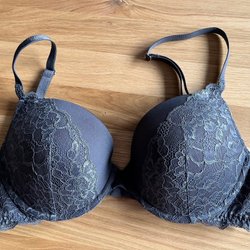 Behå grå med Spets stl 85B med bygel o vaddering.Sparsamt använd.