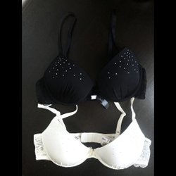 2 t-shirt behåar vit & svart, 80B, strass, spets, BH