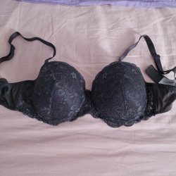 2 st push up bygel bh, grå och svart bomull st L 80A-B
