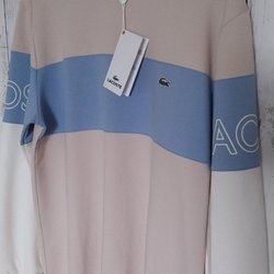 Lacoste beige/blå tröja, storlek L-XL