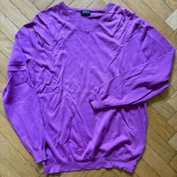 Finstickad plommonlila tröja pullover med v-ringning i bomullsblandning strl L