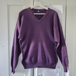Finstickad plommonlila tröja pullover med v-ringning i bomullsblandning strl L