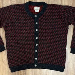 Vintage Cardigan LL Bean Red Black Wool Freeport Maine Made in Norway Size XL