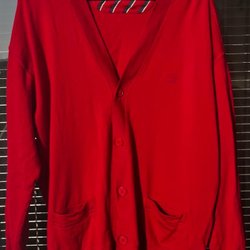 Paul & Shark - röd kofta/cardigan, 100 % ull, storlek XXL