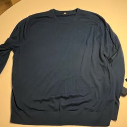 Uniqlo, merinoull, blå, rund hals