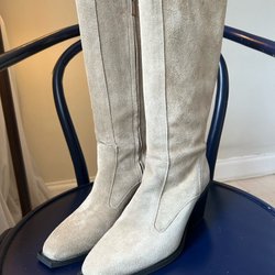 Flattered höga stövlar beige mocka med klack