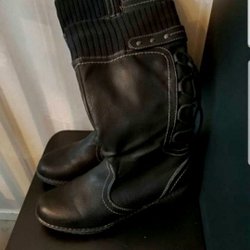 ECCO mjuk 7 wedge tred svarta kängor stövlar i läder storlek 41