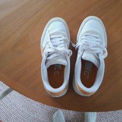 Puma sneakers vit/gulorange, stl 38; gott skick!