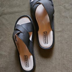 Blankens mules, slip in, Svarta i flätat skinn, Storlek 38