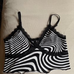 Svart crop top | Crop Topp | Fem Sexiga Revor på Bysten | Storlek L