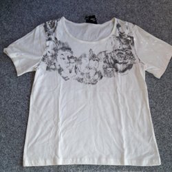 Vit topp med gråsvart mönster Stl M Oanvänd